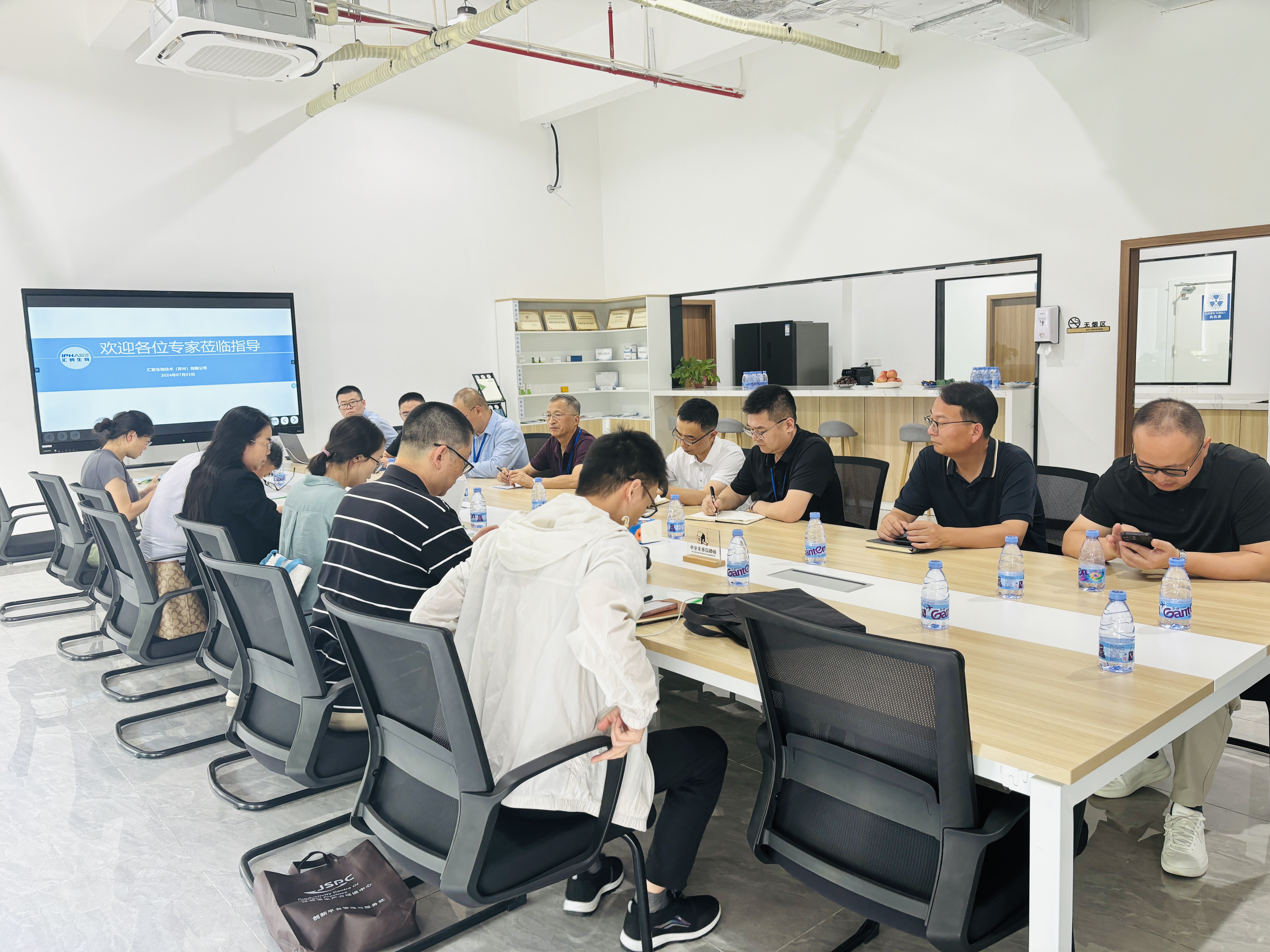 匯智生物首席科學家魏金鋒教授和匯智生物實驗室負責人杜克賀,代表實驗室對評審團領導和專家的到來表示熱烈歡迎,同時出席現(xiàn)場考核會議的還有花橋科技局領導、銀橋集團總經(jīng)理、科發(fā)集團總經(jīng)理及匯智生物的其他工作人員。